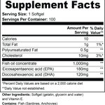 Ingredients: Fish oil concentrate, Eicosapentaenoic acid (EPA), Docosahexaenoic acid (DHA), softgel (gelatin, glycerin and water), Vitamin E.